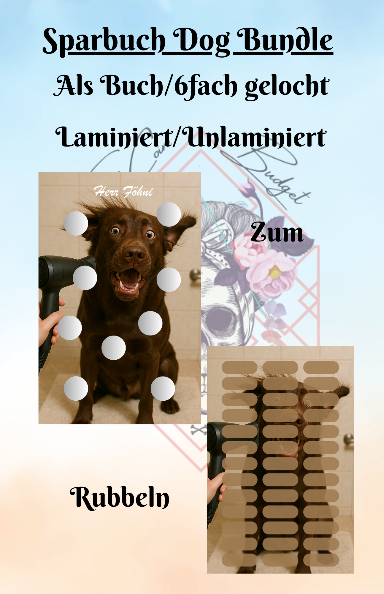 Sparbuch Dog Bundle zum rubbeln würfeln abstreichen Quersumme sparen und ausmalen.