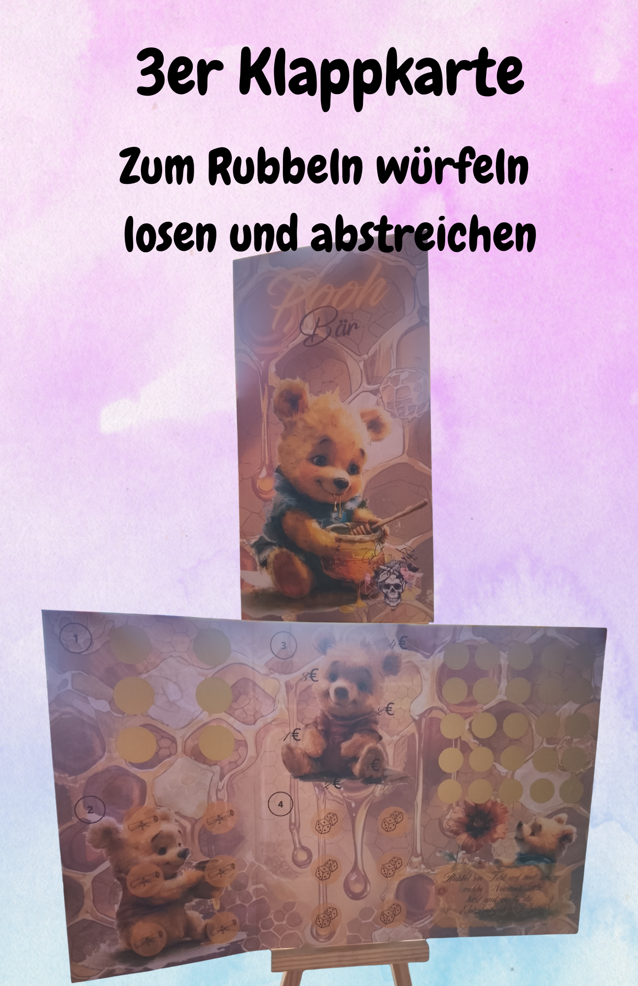 Pooh Bär eine 3er Klappkarte zum rubbeln würfeln losen und abstreichen