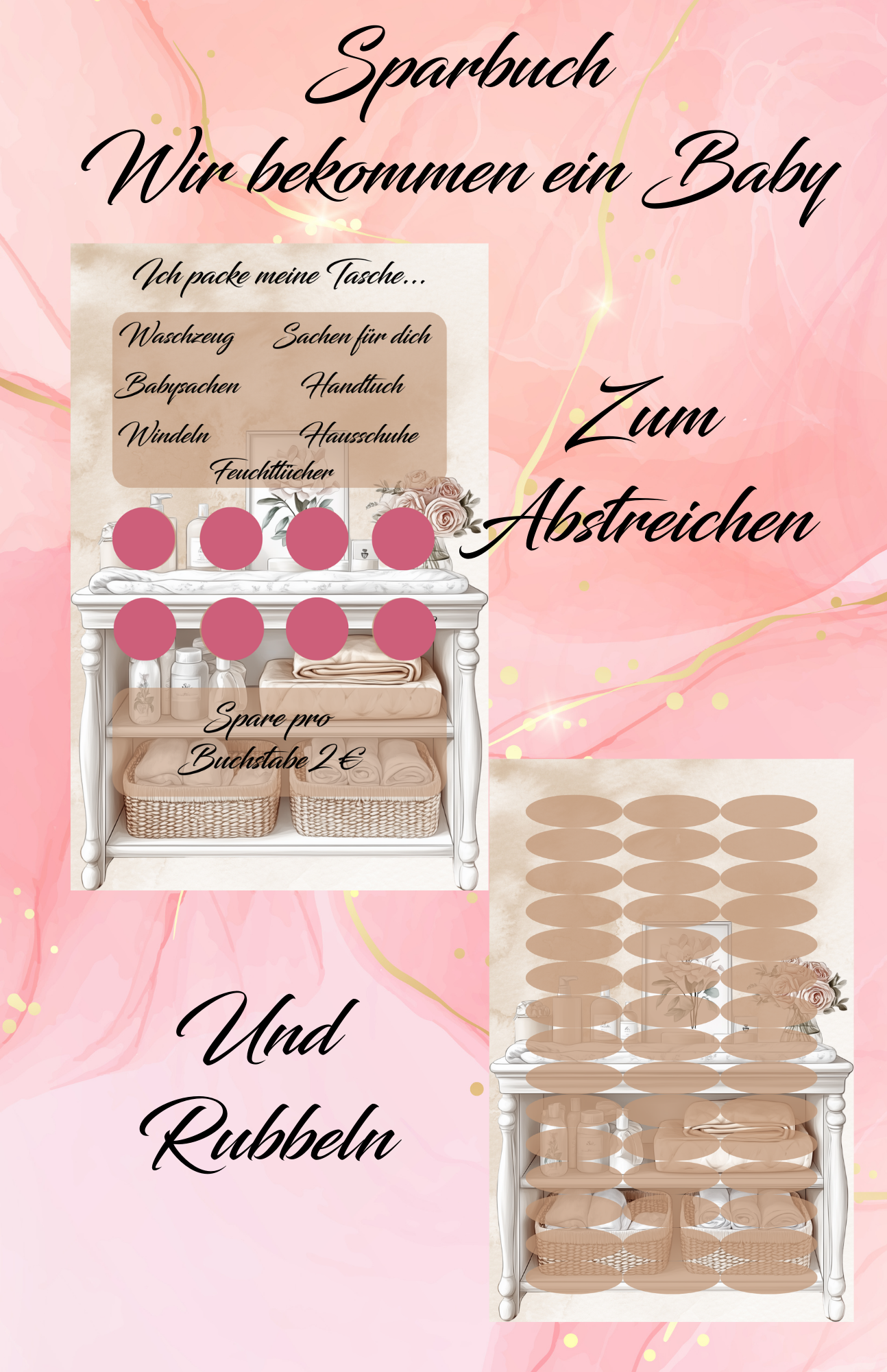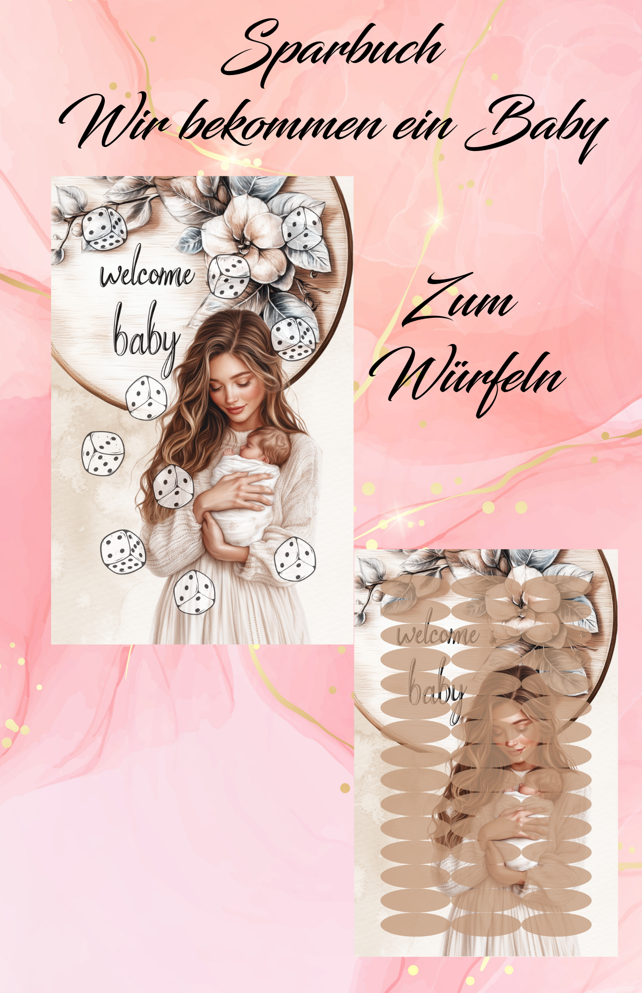 Sparbuch wir bekommen ein Baby gebunden zum Würfeln Abstreichen Rubbeln