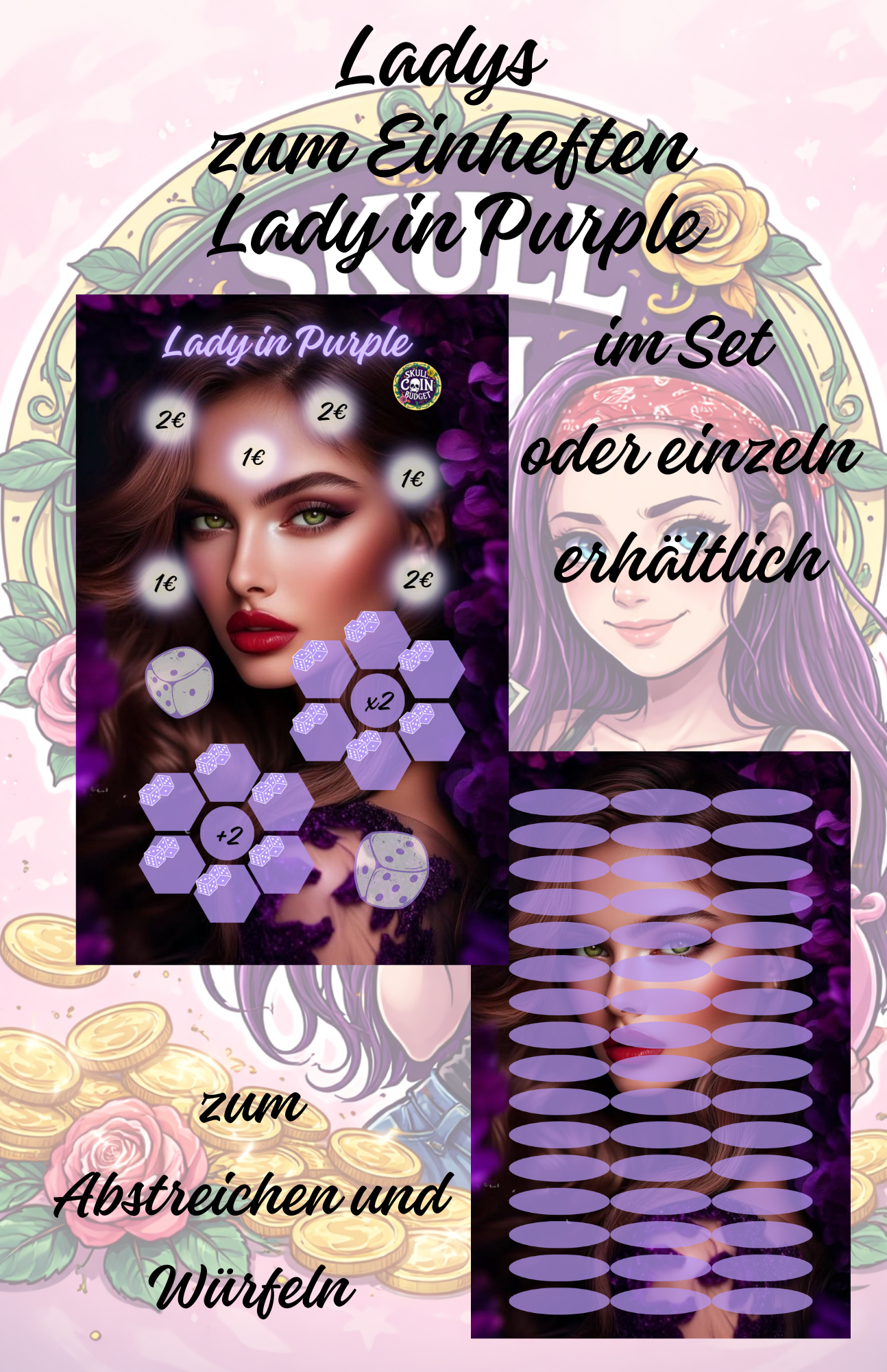 Lady in Purple zum abstreichen und würfeln